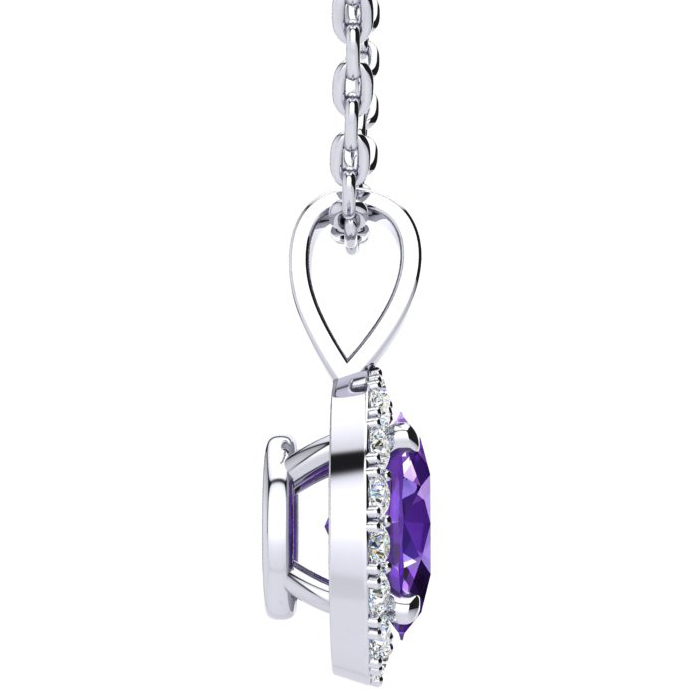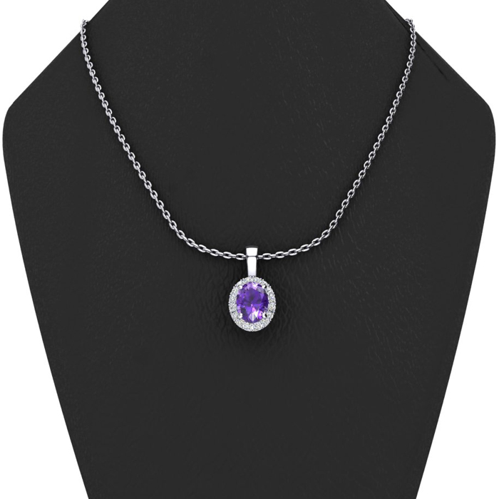 1/2 Carat Oval Shape Amethyst and Halo Diamond Necklace In 14 Karat White Gold With 18 Inch Chain