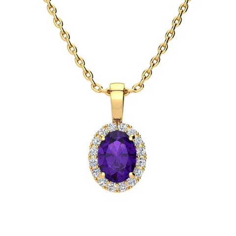 1/2 Carat Oval Shape Amethyst and Halo Diamond Necklace In 14 Karat Yellow Gold With 18 Inch Chain