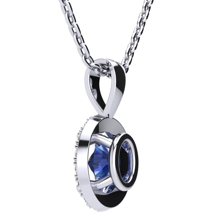 0.62 Carat Oval Shape Tanzanite and Halo Diamond Necklace In 14 Karat White Gold With 18 Inch Chain