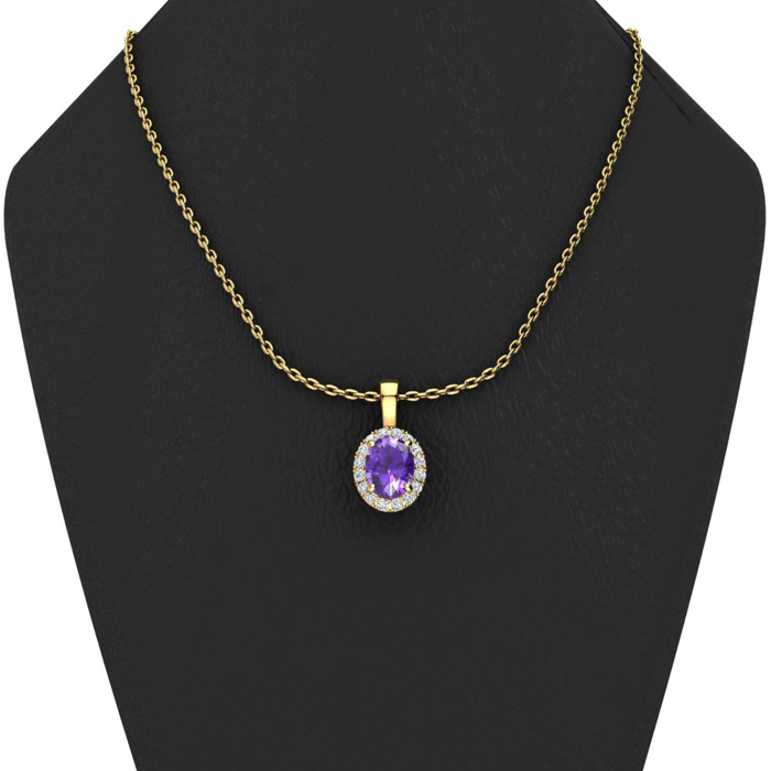 3/4 Carat Oval Shape Amethyst and Halo Diamond Necklace In 14 Karat Yellow Gold With 18 Inch Chain