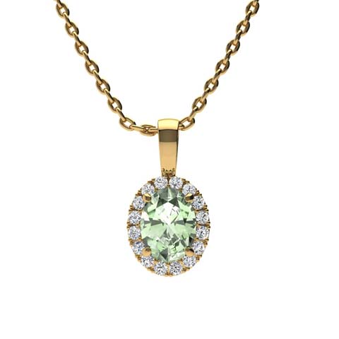 3/4 Carat Oval Shape Green Amethyst and Halo Diamond Necklace In 14 Karat Yellow Gold With 18 Inch Chain