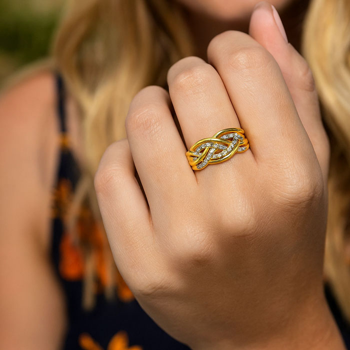 .05 Carat Natural Diamond Swirl Ring In Yellow & White Gold Overlay