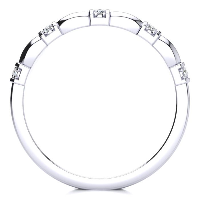 This diamond wedding band features 10 sparkling diamonds in H-I color, I1-I2 clarity. Total diamond weight is 0.05 carats. This band is 2.7mm wide and is in 10 karat white gold.