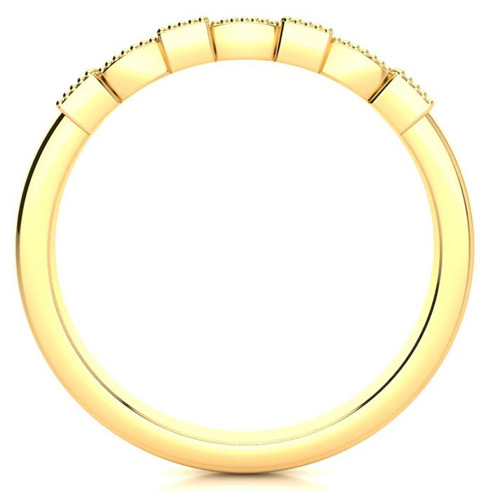 This diamond wedding band features 10 sparkling diamonds in H-I color, I1-I2 clarity. Total diamond weight is 0.05 carats. This band is 2.5mm wide and is in 10 karat yellow gold.
