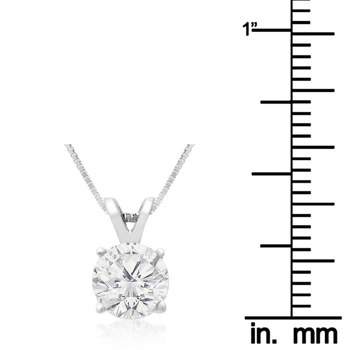 There's a lot to be said about the beauty of our 1 carat diamond solitaire necklace...but just one look and its magnificence speaks for itself! Four-prong setting adds to the elegance of this necklace, presented in 14kt white gold.