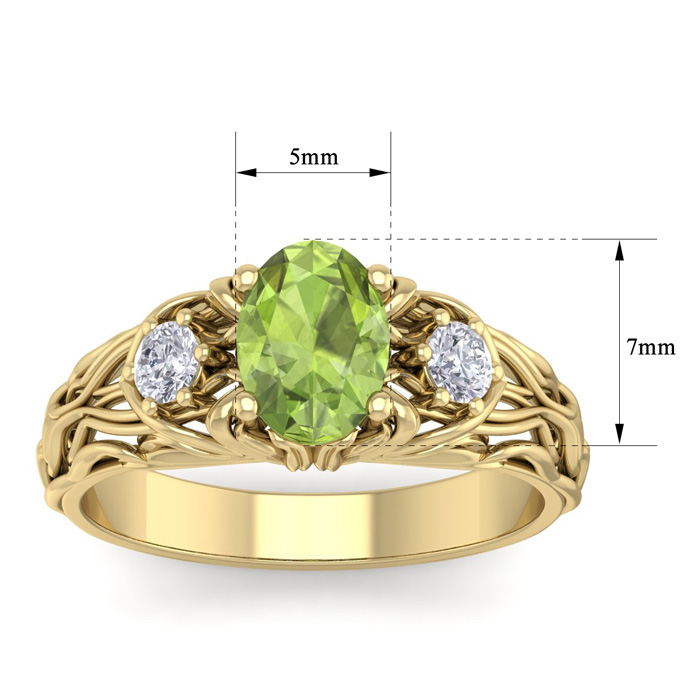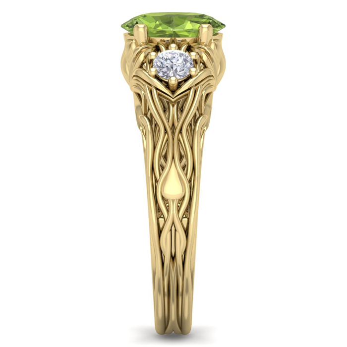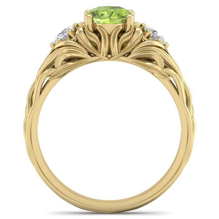 1 1/10 Carat Oval Shape Peridot and Diamond Intricate Vine Engagement Ring In 14 Karat Yellow Gold