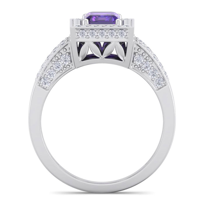 1 1/2 Carat Amethyst and Halo Diamond Ring In 14 Karat White Gold