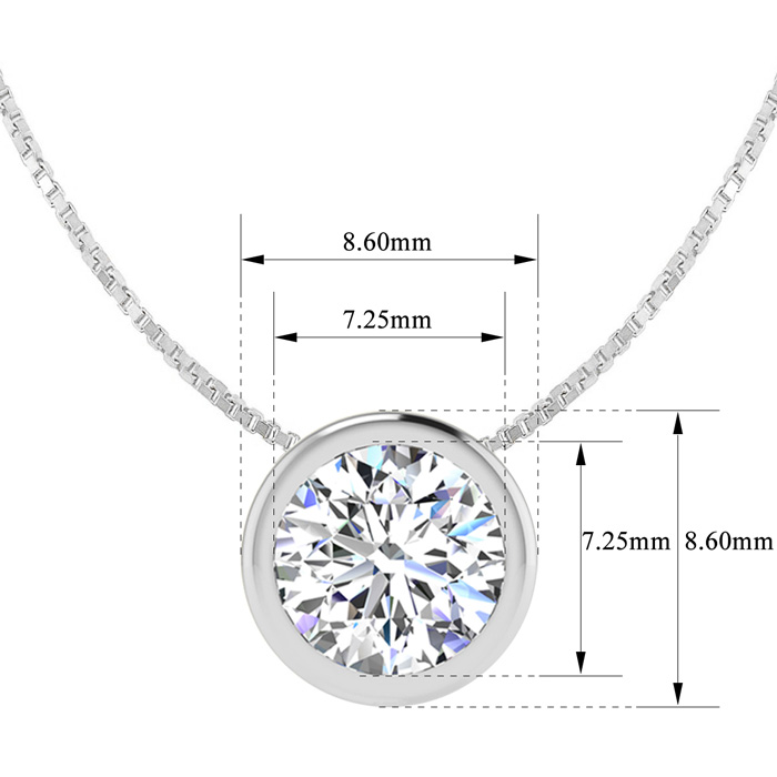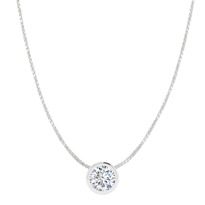 1 1/2 Carat Natural Bezel Set Diamond Solitaire Necklace in 14K White Gold, 18 Inches