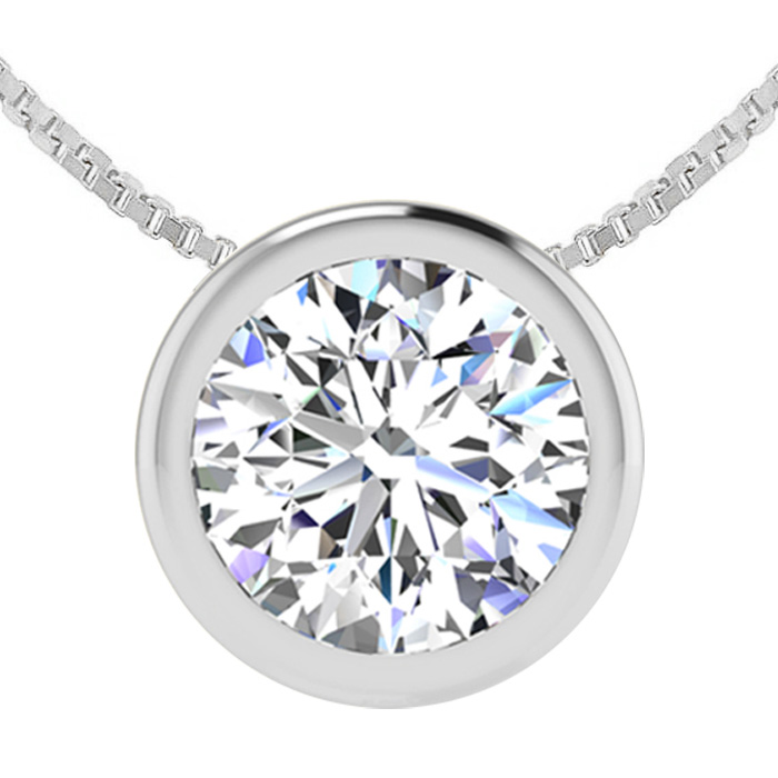 1 1/2 Carat Natural Bezel Set Diamond Solitaire Necklace in 14K White Gold, 18 Inches