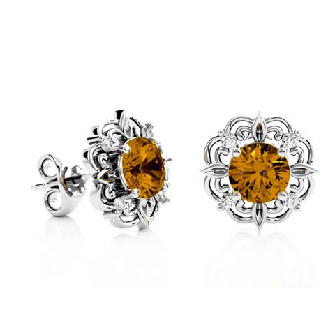 1 1/2 Carat Citrine and Diamond Antique Stud Earrings In 14 Karat White Gold