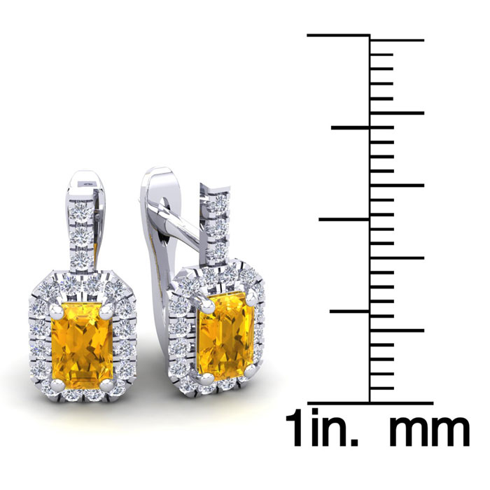 1 1/2 Carat Citrine and Halo Diamond Dangle Earrings In 14 Karat White Gold