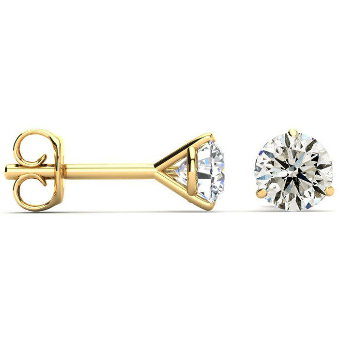 1 1/2 Carat Natural Colorless Diamond Stud Earrings in 14 Karat Yellow Gold Martini Setting