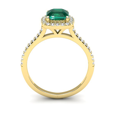 1 1/2 Carat Cushion Cut Created Emerald and Halo Diamond Ring In 14K Yellow Gold