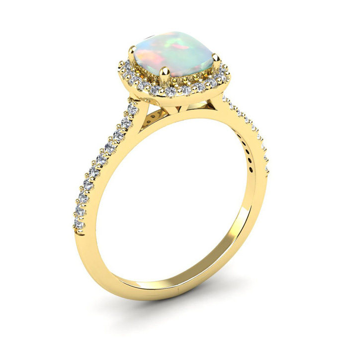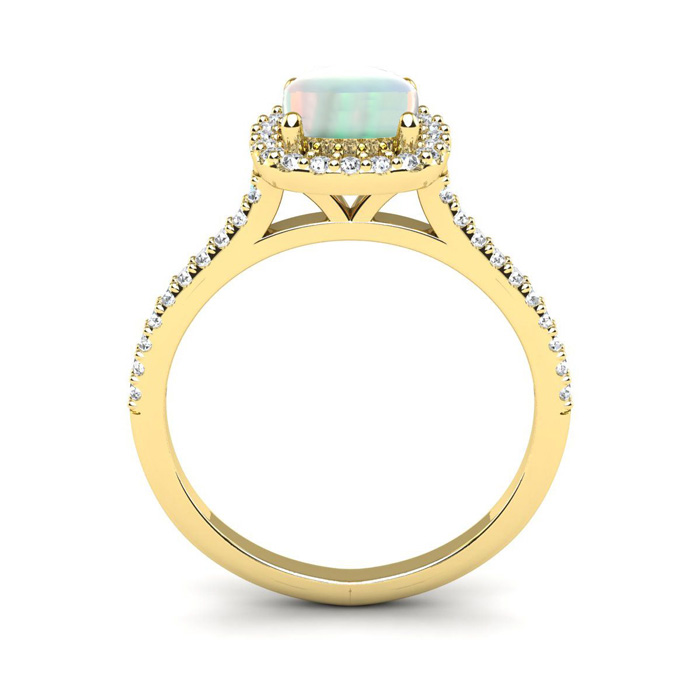 1 1/2 Carat Cushion Cut Created Opal and Halo Diamond Ring In 14K Yellow Gold