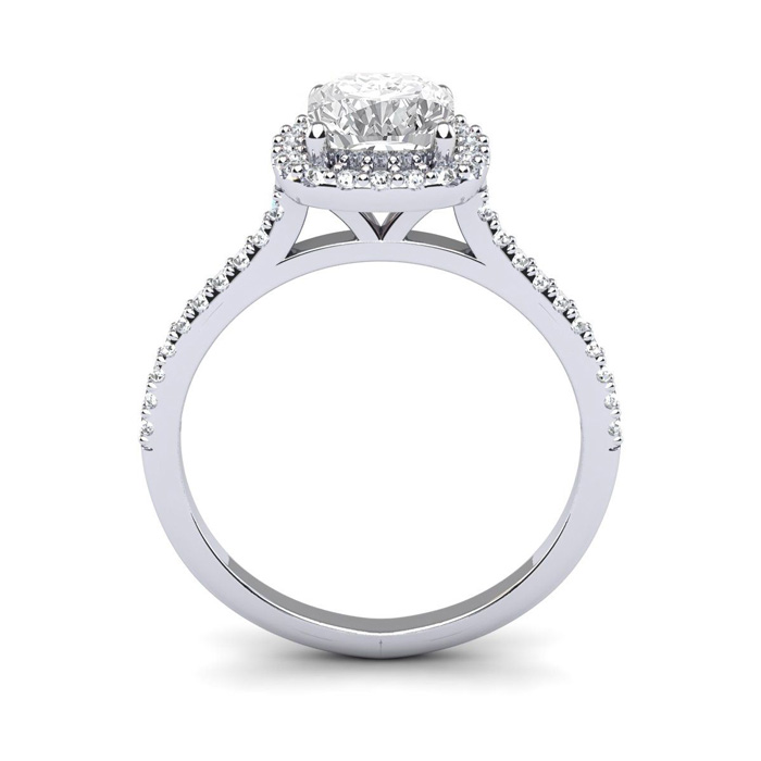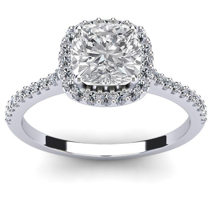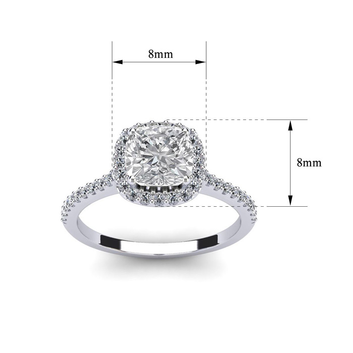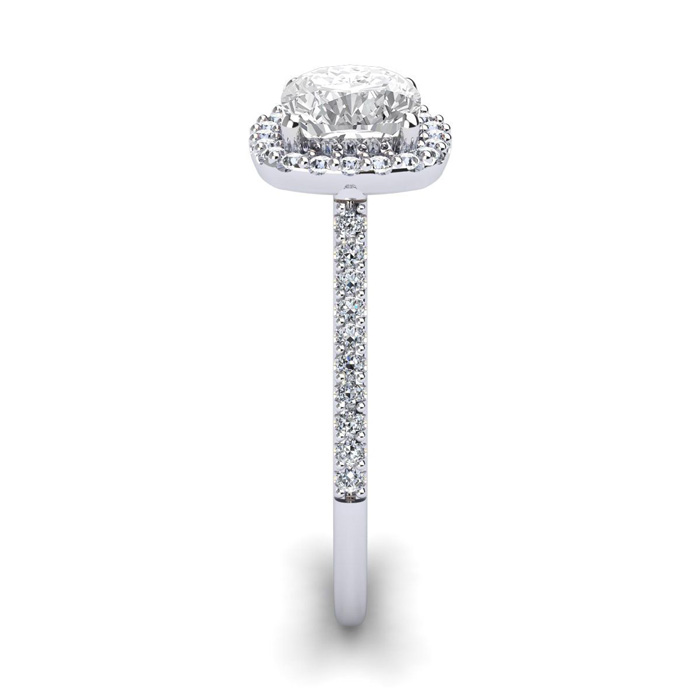 1 1/2 Carat Cushion Cut Halo Lab Grown Diamond Ring In 14K White Gold