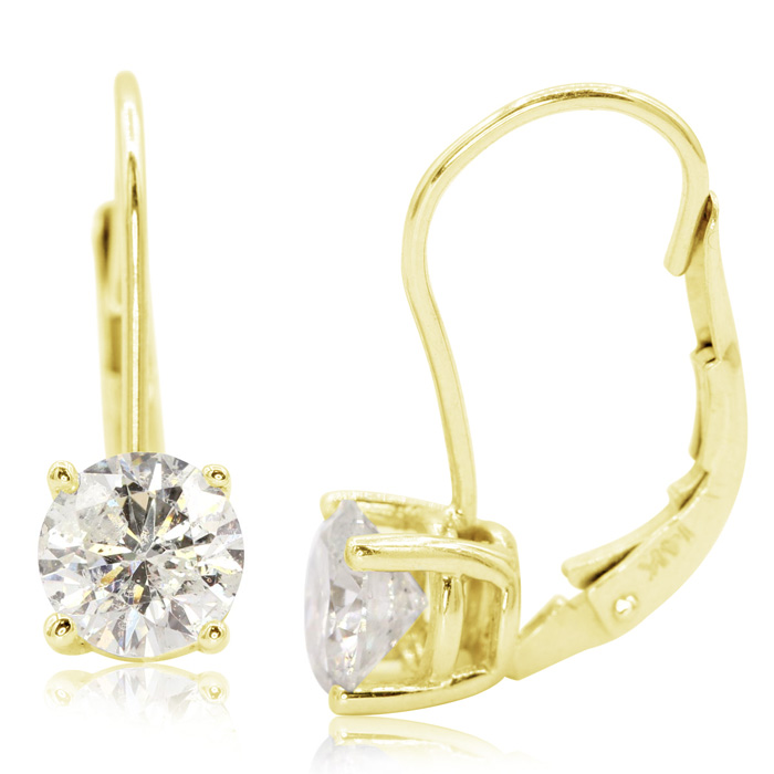 1 1/2 Carat Natural Diamond Leverback Earrings In 14 Karat Yellow Gold
