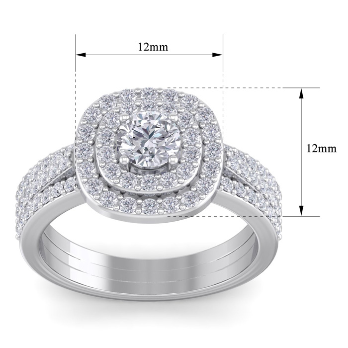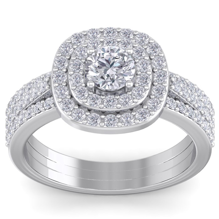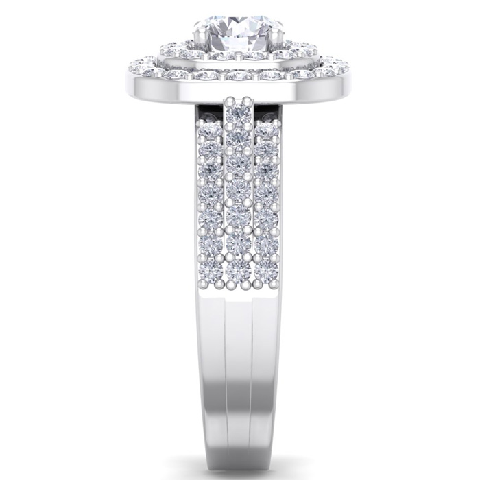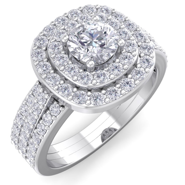 1 1/2 Carat Natural Double Halo Diamond Engagement Ring In 14 Karat White Gold