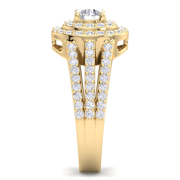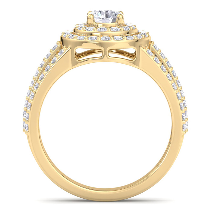 1 1/2 Carat Natural Double Halo Diamond Engagement Ring In 14 Karat Yellow Gold