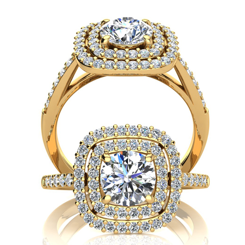 1 1/2 Carat Natural Double Halo Diamond Engagement Ring in 14k Yellow Gold