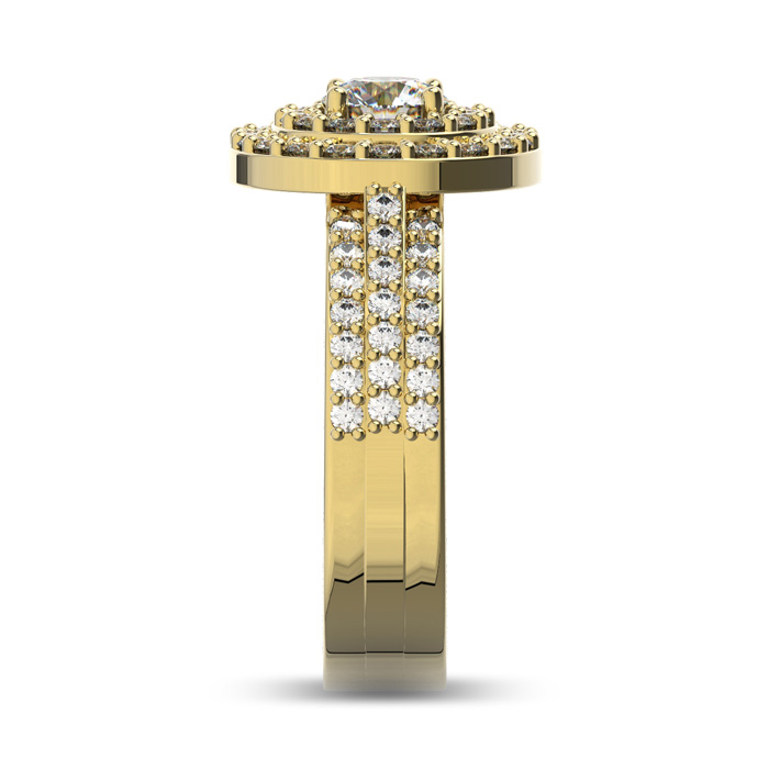 1 1/2 Carat Natural Double Halo Diamond Engagement Ring in 14k Yellow Gold