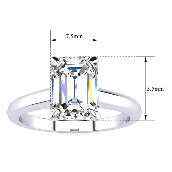 1 1/2 Carat Natural Emerald Cut Diamond Solitaire Ring In 14K White Gold