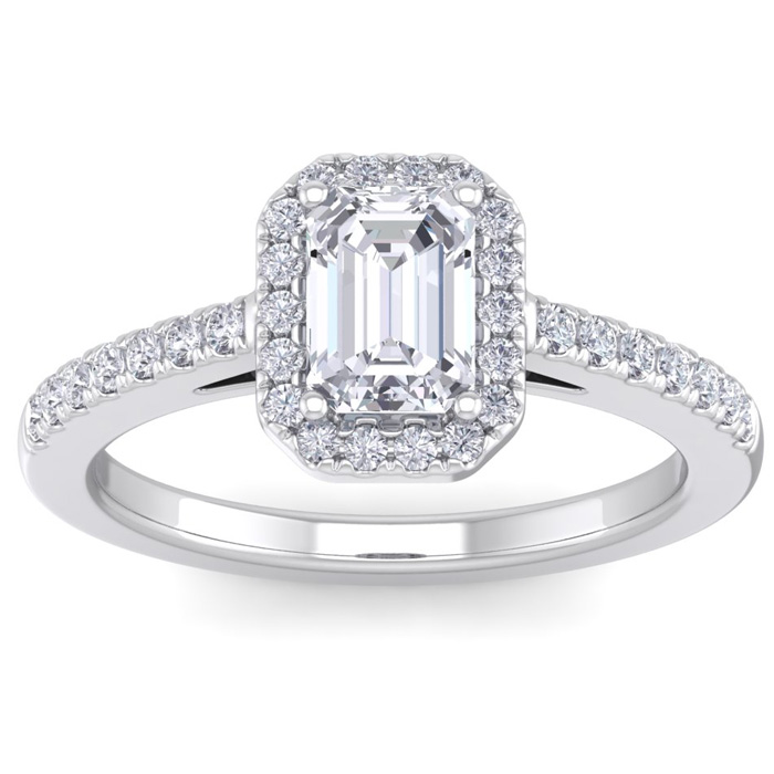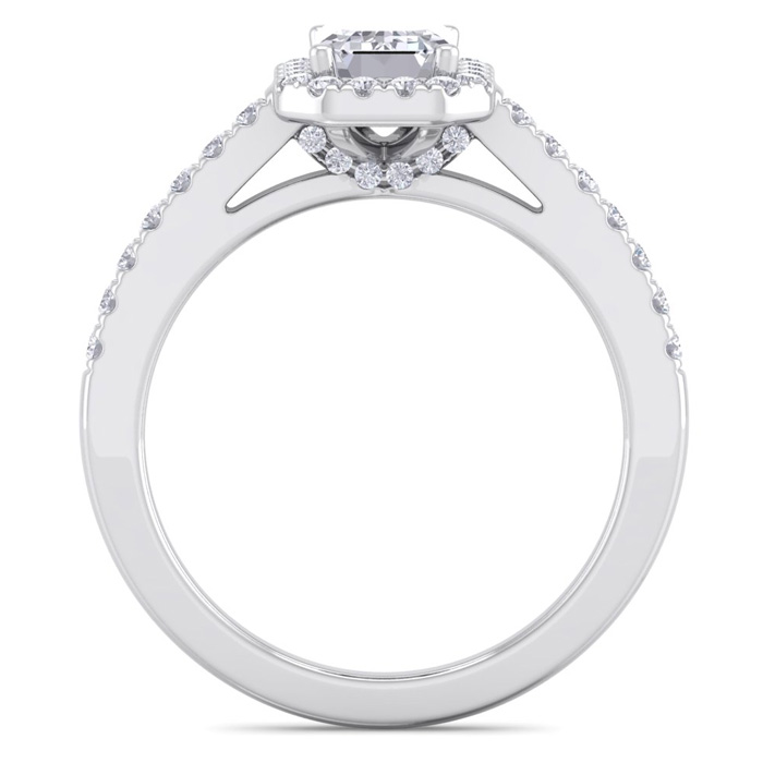 1 1/2 Carat Natural Emerald Cut Halo Diamond Engagement Ring In 14K White Gold