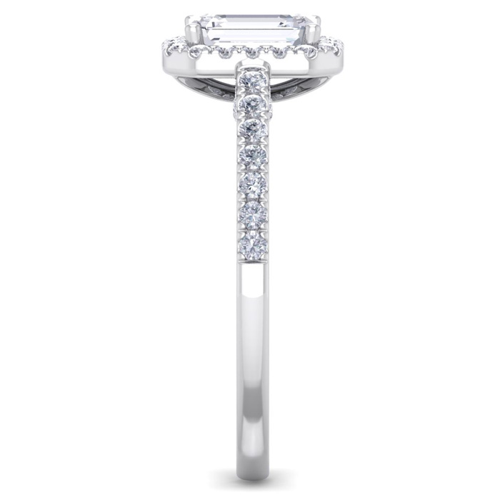 1 1/2 Carat Emerald Cut Halo Lab Grown Diamond Engagement Ring In 14K White Gold