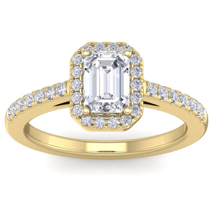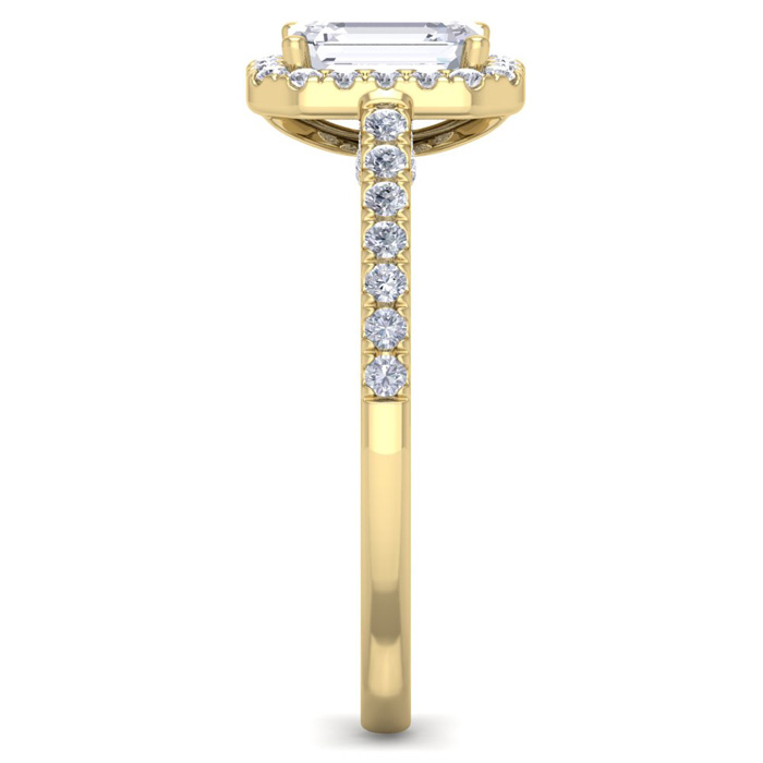 1 1/2 Carat Emerald Cut Halo Lab Grown Diamond Engagement Ring In 14K Yellow Gold