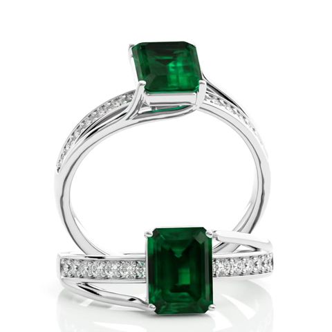 1 1/2 Carat Emerald Shape Emerald and Diamond Ring In 14 Karat White Gold