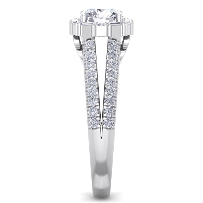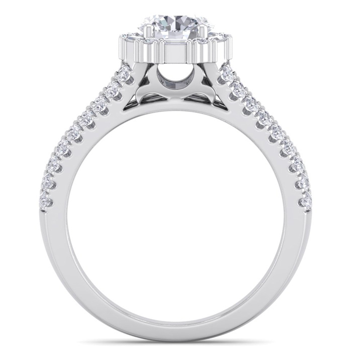 1 1/2 Carat Natural Fancy Halo Diamond Engagement Ring in 14 Karat White Gold