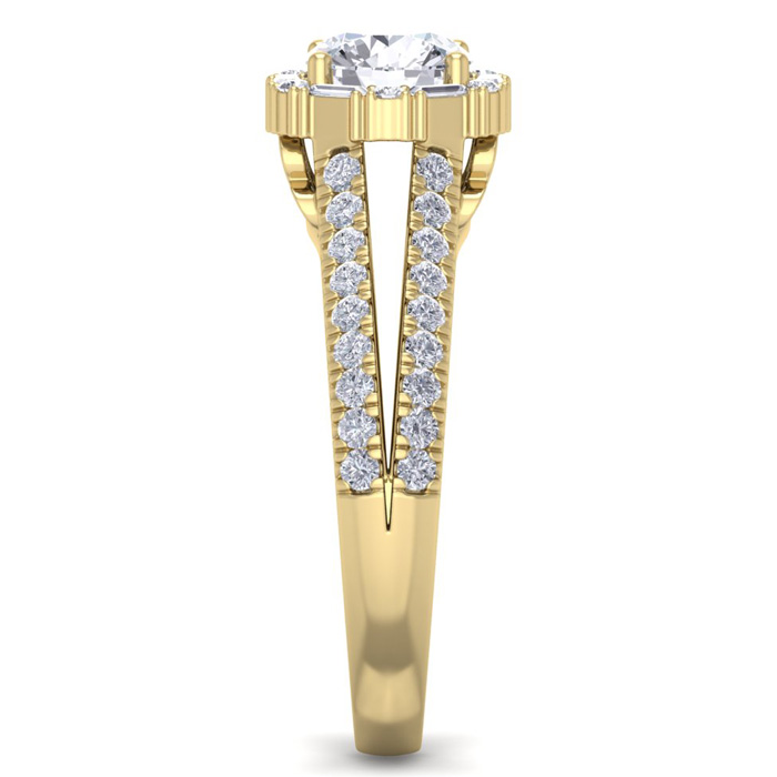 1 1/2 Carat Natural Fancy Halo Diamond Engagement Ring in 14 Karat Yellow Gold