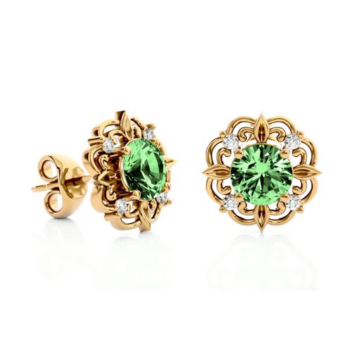 1 1/2 Carat Green Amethyst and Diamond Antique Stud Earrings In 14 Karat Yellow Gold