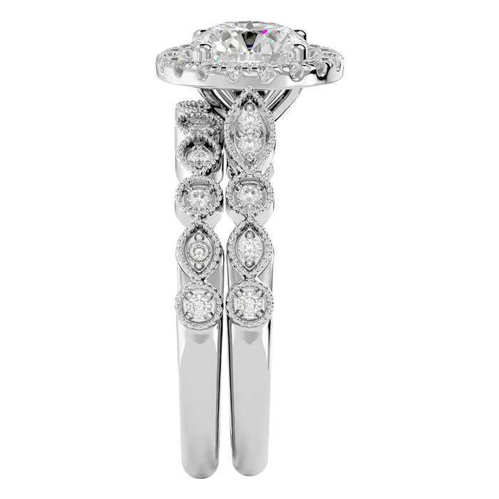 1 1/2 Carat Halo Diamond Bridal Set In 14 Karat White Gold