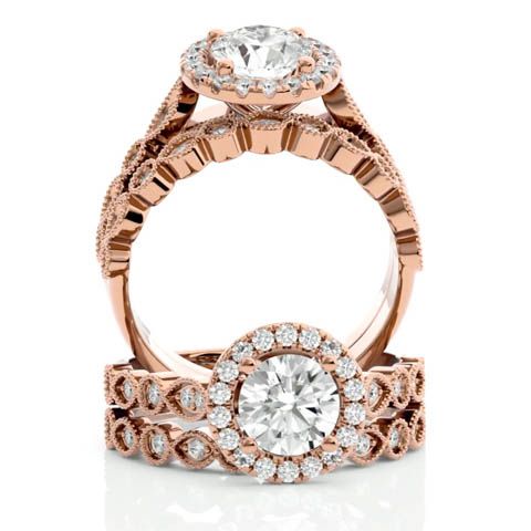 1 1/2 Carat Halo Diamond Bridal Set In 14 Karat Yellow Gold