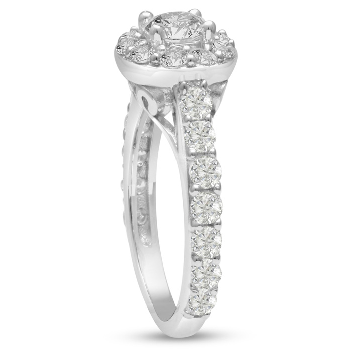 1 1/2 Carat Natural Halo Diamond Engagement Ring in 14 Karat White Gold