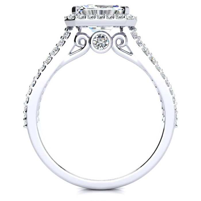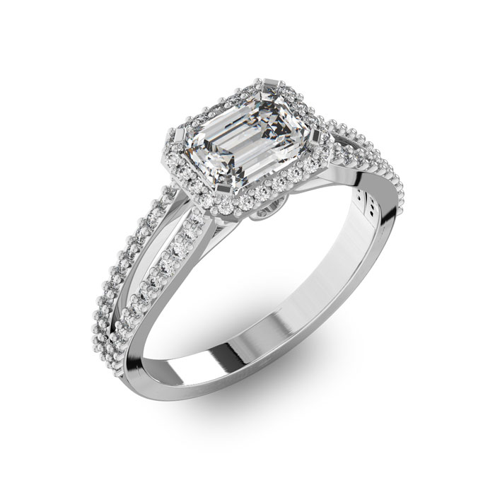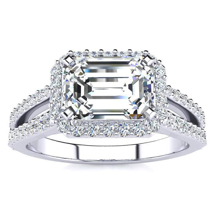 1 1/2 Carat Natural Halo Diamond Engagement Ring in 14 Karat White Gold, Split Shank