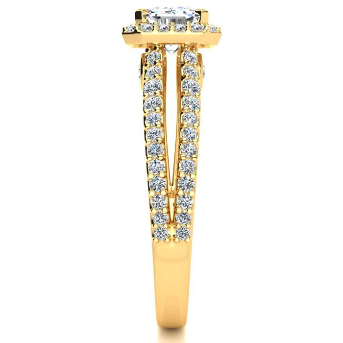 1 1/2 Carat Natural Halo Diamond Engagement Ring in 14 Karat Yellow Gold, Split Shank