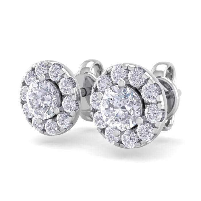 1 1/2 Carat Natural Halo Diamond Stud Earrings In 14 Karat White Gold