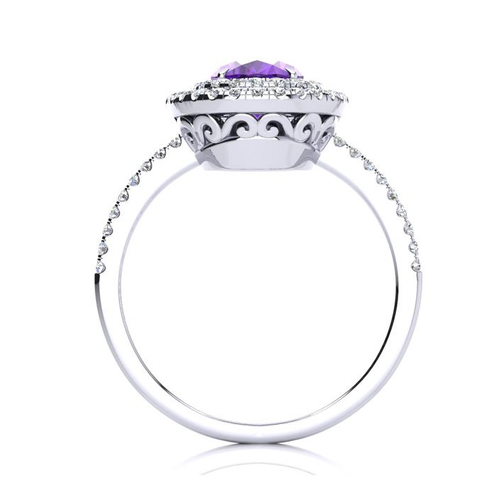 1 1/2 Carat Oval Shape Amethyst and Double Halo Diamond Ring In 14 Karat White Gold
