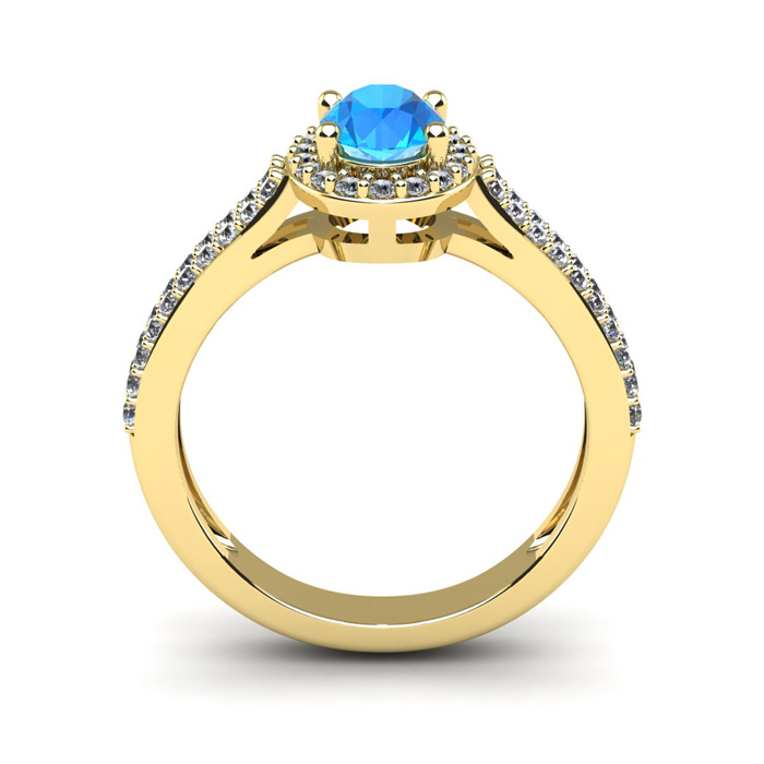 1 1/2 Carat Oval Shape Blue Topaz and Halo Diamond Ring In 14 Karat Yellow Gold