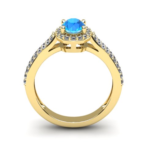 1 1/2 Carat Oval Shape Blue Topaz and Halo Diamond Ring In 14 Karat Yellow Gold