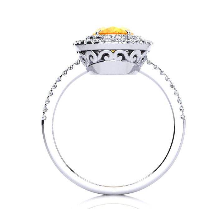 1 1/2 Carat Oval Shape Citrine and Double Halo Diamond Ring In 14 Karat White Gold