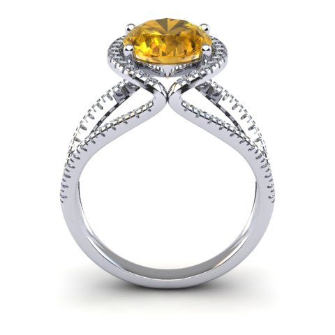 1 1/2 Carat Oval Shape Citrine and Halo Diamond Ring In 14 Karat White Gold