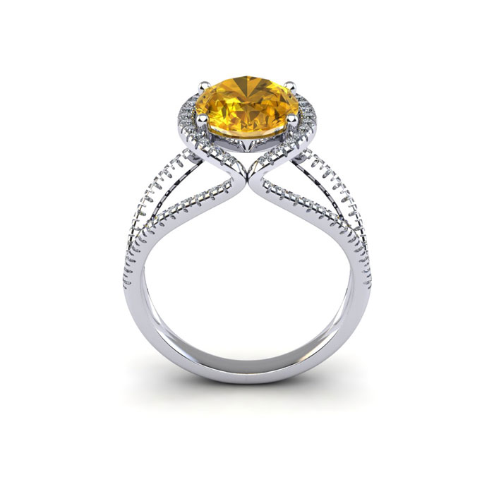 1 1/2 Carat Oval Shape Citrine and Halo Diamond Ring In 14 Karat White Gold
