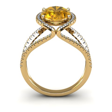 1 1/2 Carat Oval Shape Citrine and Halo Diamond Ring In 14 Karat Yellow Gold