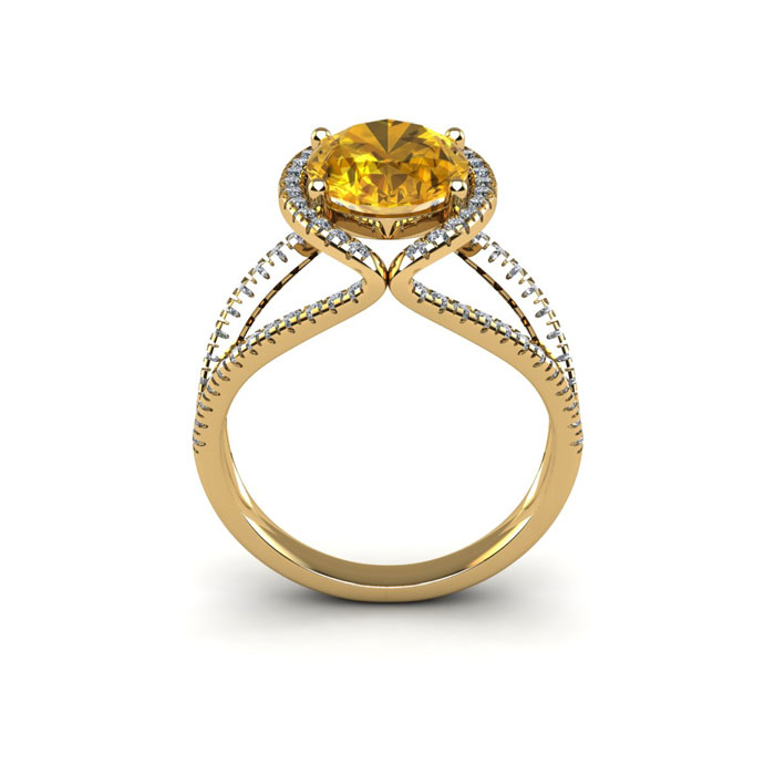 1 1/2 Carat Oval Shape Citrine and Halo Diamond Ring In 14 Karat Yellow Gold