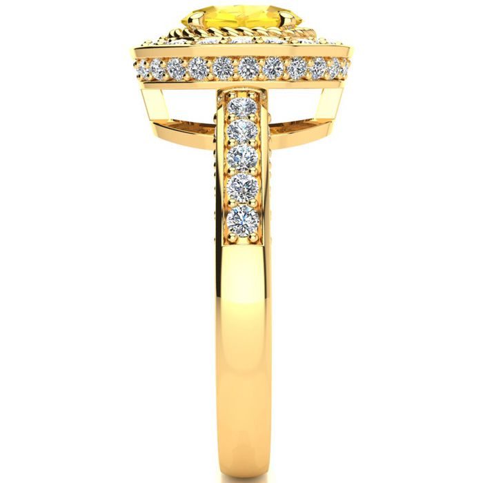 1 1/2 Carat Oval Shape Citrine and Halo Diamond Ring In 14 Karat Yellow Gold