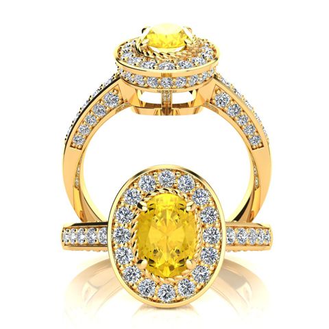 1 1/2 Carat Oval Shape Citrine and Halo Diamond Ring In 14 Karat Yellow Gold