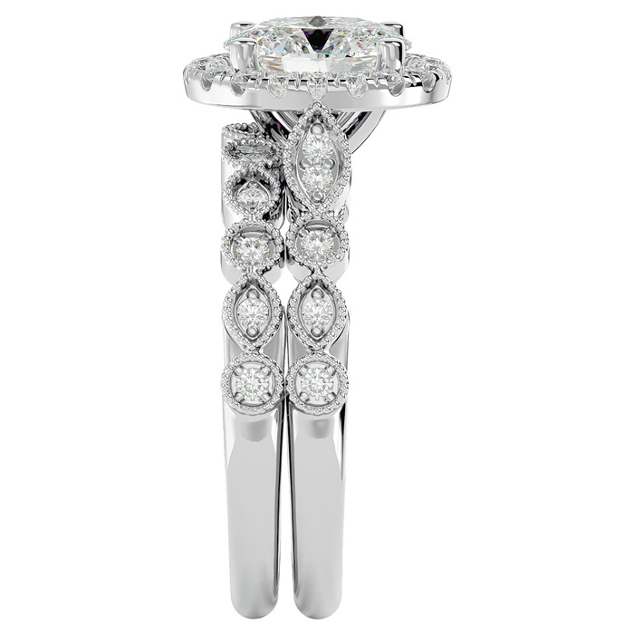 1 1/2 Carat Oval Shape Diamond Bridal Set In 14 Karat White Gold