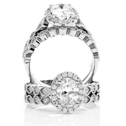 1 1/2 Carat Oval Shape Diamond Bridal Set In 14 Karat White Gold